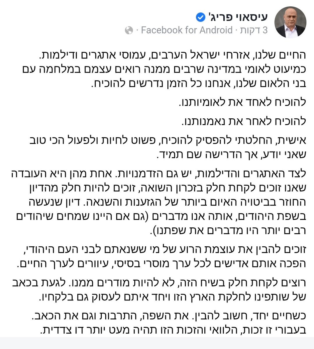 רואה חשבון במקצועו, ואיש ציבור בחברה הערבית בישראל. כשצריך קורבן, תמיד הכי קל למצוא את הקורבן הערבי ולדרוך עליו. את המנדט מעבירים לאלטרנטיבה • כדי שנעבור לעידן חדש כל אחד צריך. רציתי להיות שותף ולא עלה תאנה, אבל לצערי נותרתי בעמדת מיעוט. 'עיסוואי, אתה מוכשר, אל תשכנע אותנו למה אנחנו צריכים.